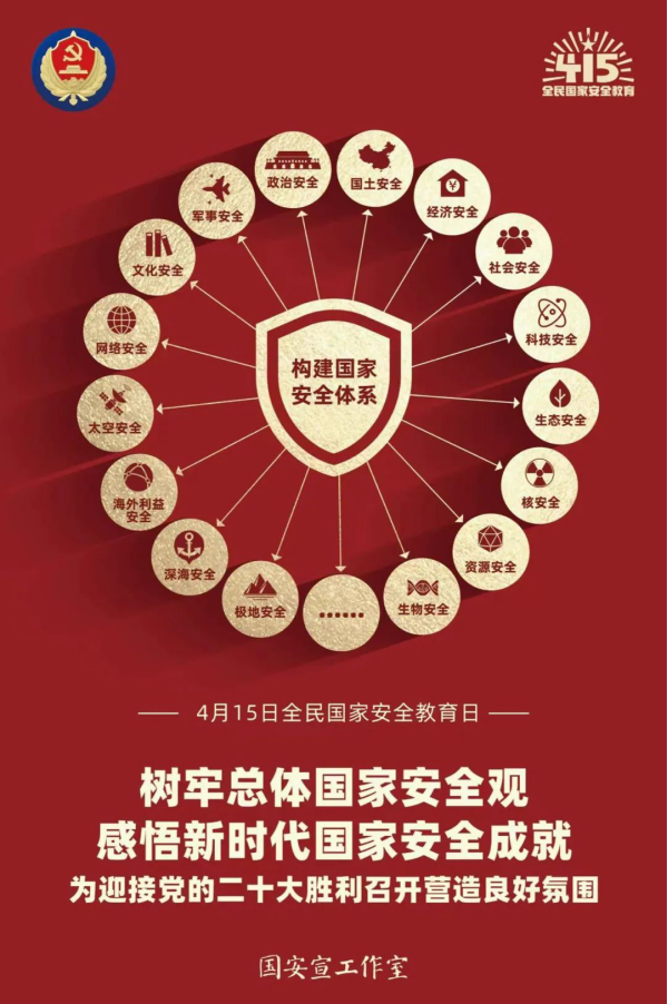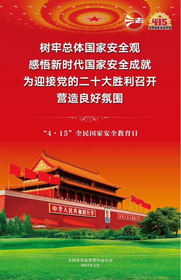 今年的4月15日是第七個全民國家安全教育日。今年的活動主題是“樹牢總體國家安全觀,感悟新時代國家安全成就,為迎接黨的二十大勝利召開營造良好氛圍”。