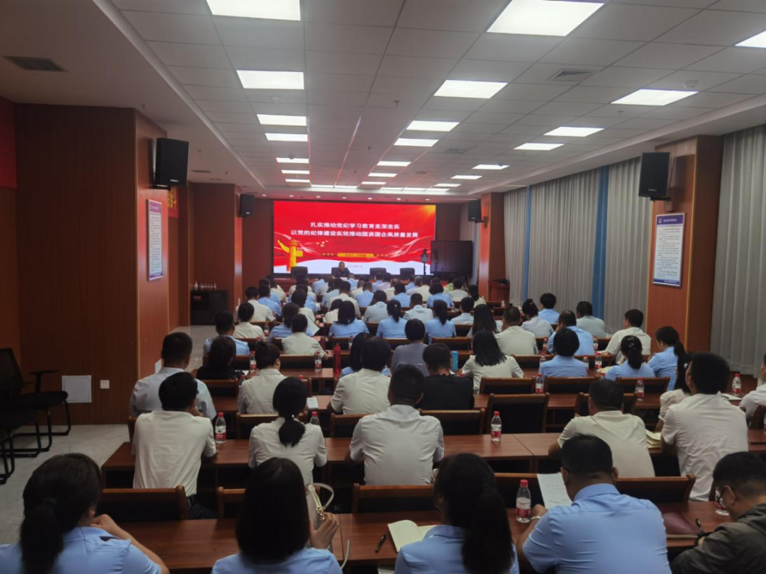 會上,王利峰同志以“扎實推動黨紀學習教育走深走實 以黨的紀律建設(shè)實效推動國資國企高質(zhì)量發(fā)展”為主題,圍繞準確深入學習領(lǐng)會習近平總書記關(guān)于全面加強黨的紀律建設(shè)的重要論述、準確把握《中國共產(chǎn)黨紀律處分條例》、緊密結(jié)合國有企業(yè)改革發(fā)展實際,把加強紀律建設(shè)要求落實到實際工作中等三個方面,系統(tǒng)深入地為黨員干部職工講授了一堂生動的專題黨課。