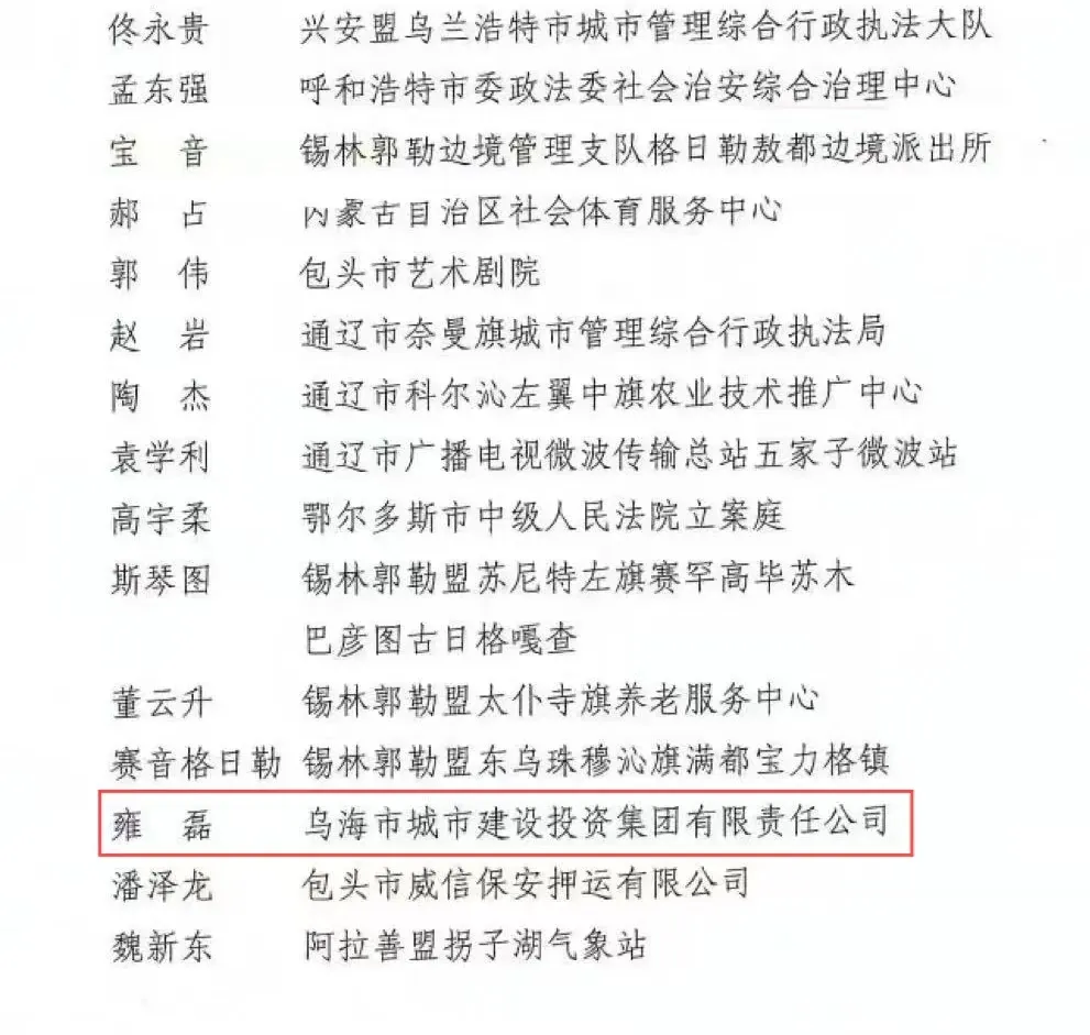 烏海市城投集團(tuán)雍磊同志獲得內(nèi)蒙古自治區(qū)2024年度“最美退役軍人”榮譽(yù)稱號(hào)