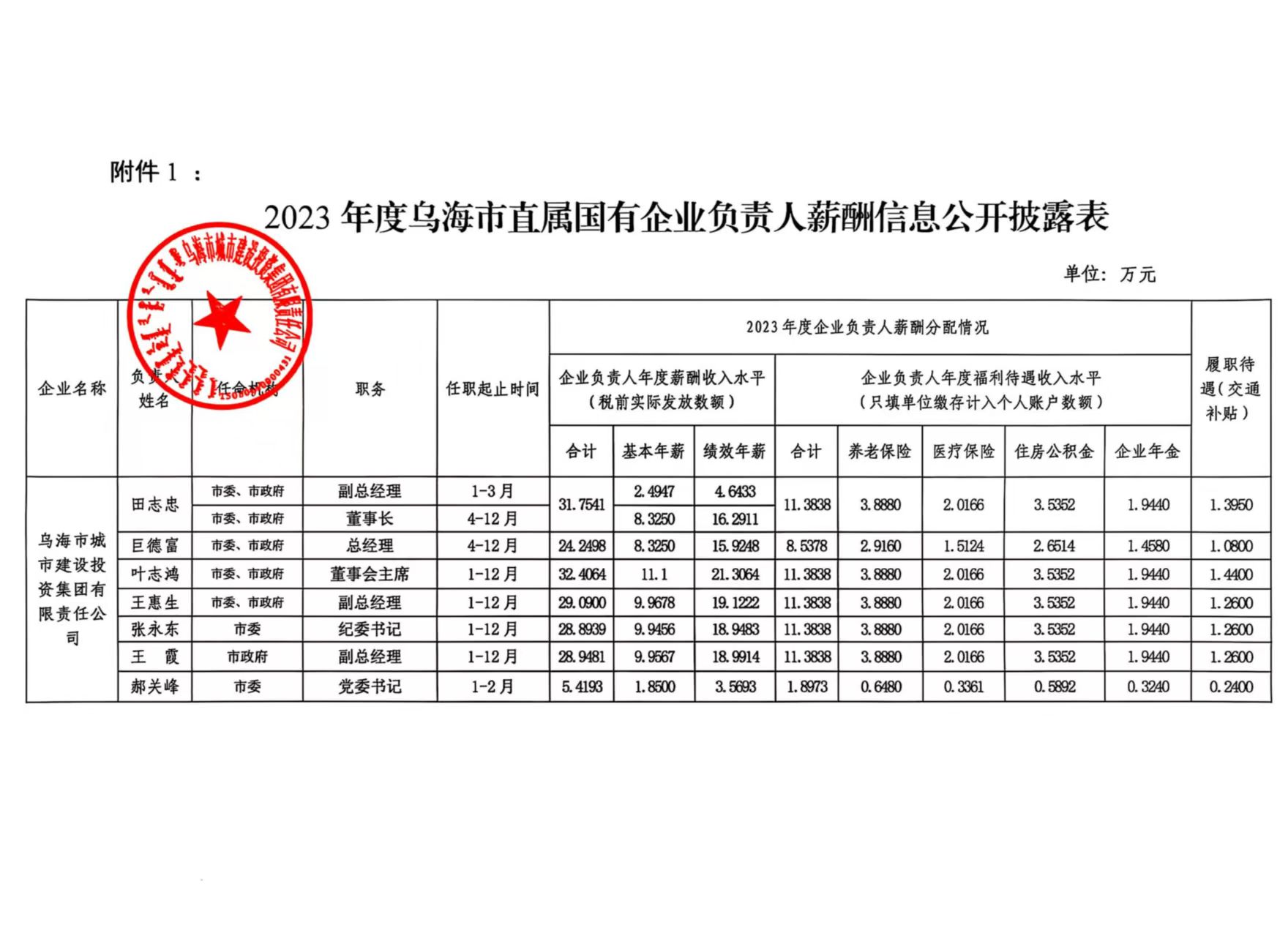 - 2023-01-06烏海市城市建設(shè)投資集團(tuán)有限責(zé)任公司2021年度企業(yè)負(fù)責(zé)人薪酬信息公開(kāi)披露表