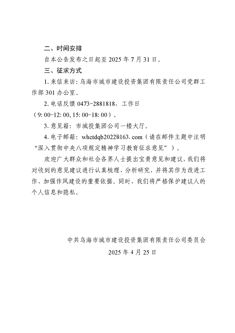 - 2025-10-14烏海市城市建設(shè)投資集團(tuán)有限責(zé)任公司關(guān)于終止與內(nèi)蒙古華格項(xiàng)目管理咨詢有限責(zé)任公司業(yè)務(wù)合作的通知