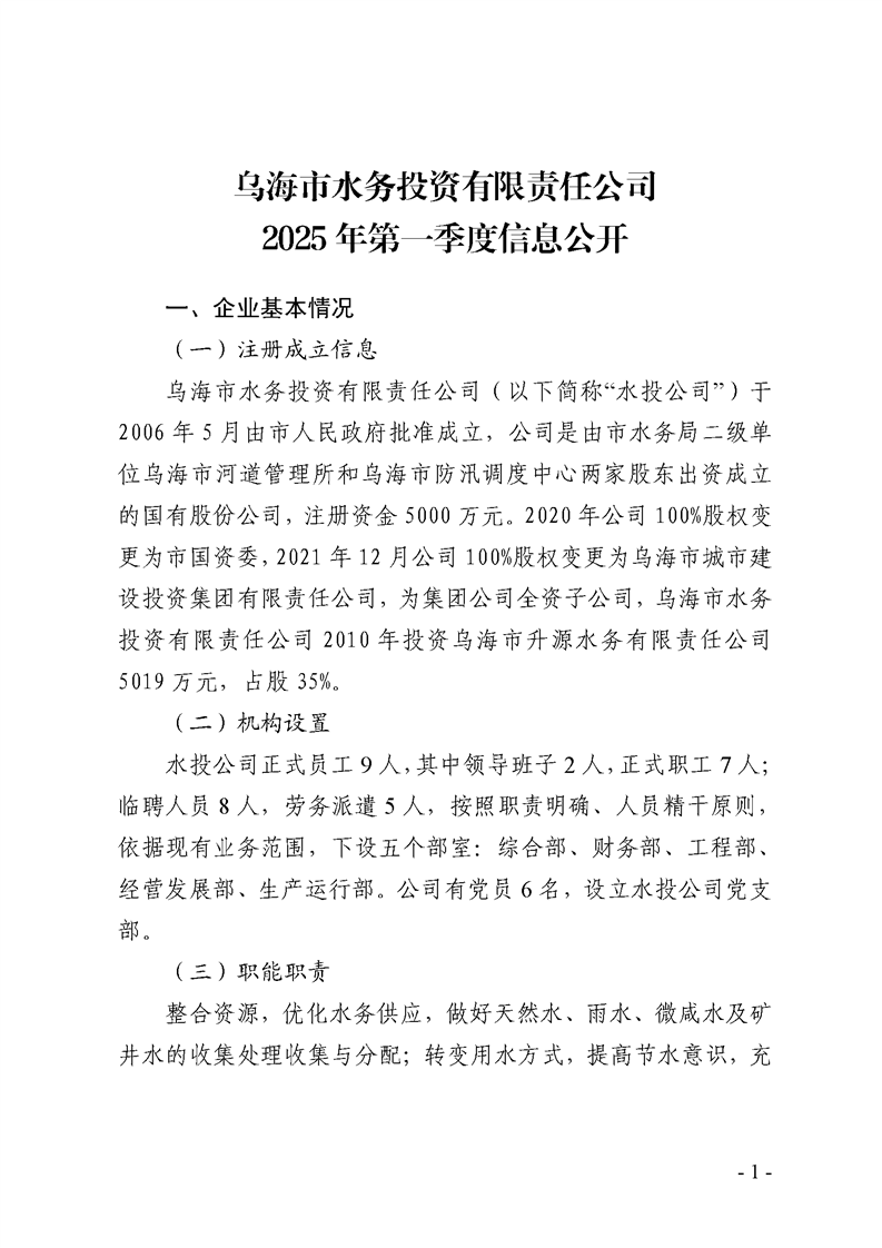 - 2025-10-22烏海市水務(wù)投資有限責任公司2025年第三季度信息公開