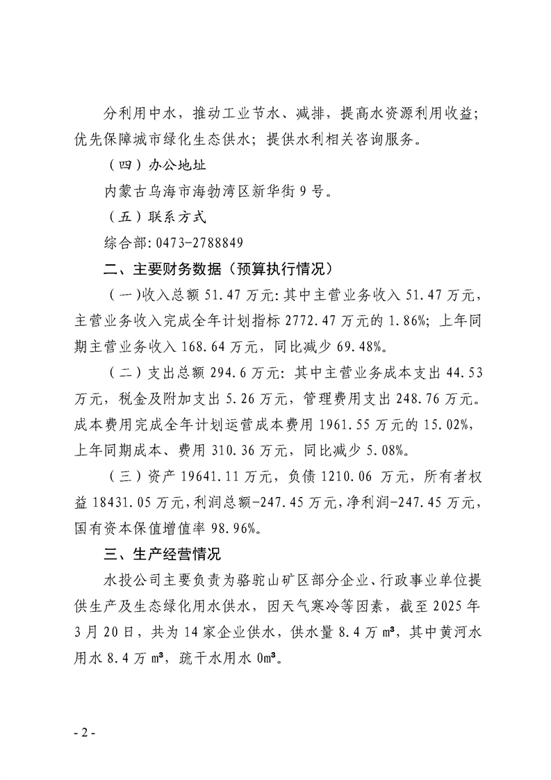 - 2025-07-28烏海市水務(wù)投資有限責任公司2025年第二季度信息公開