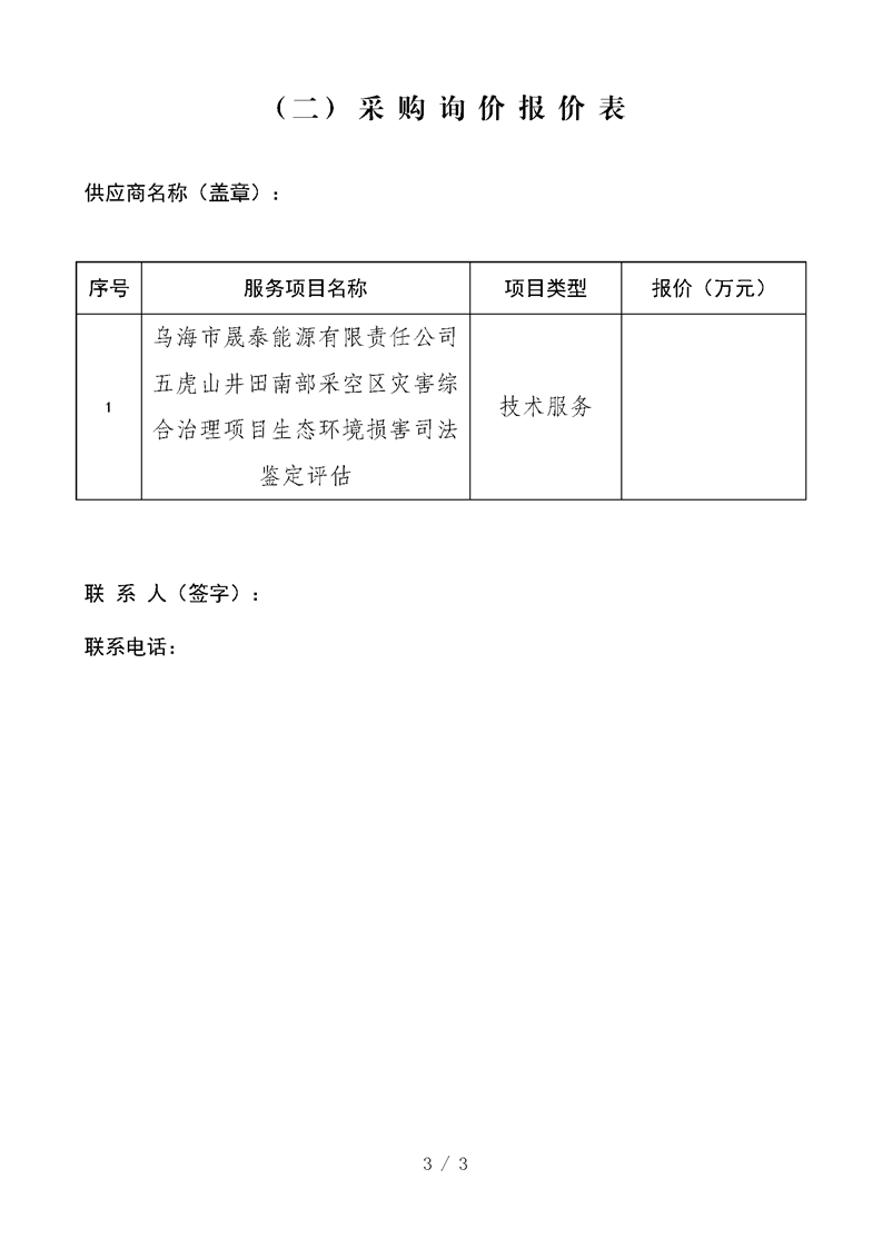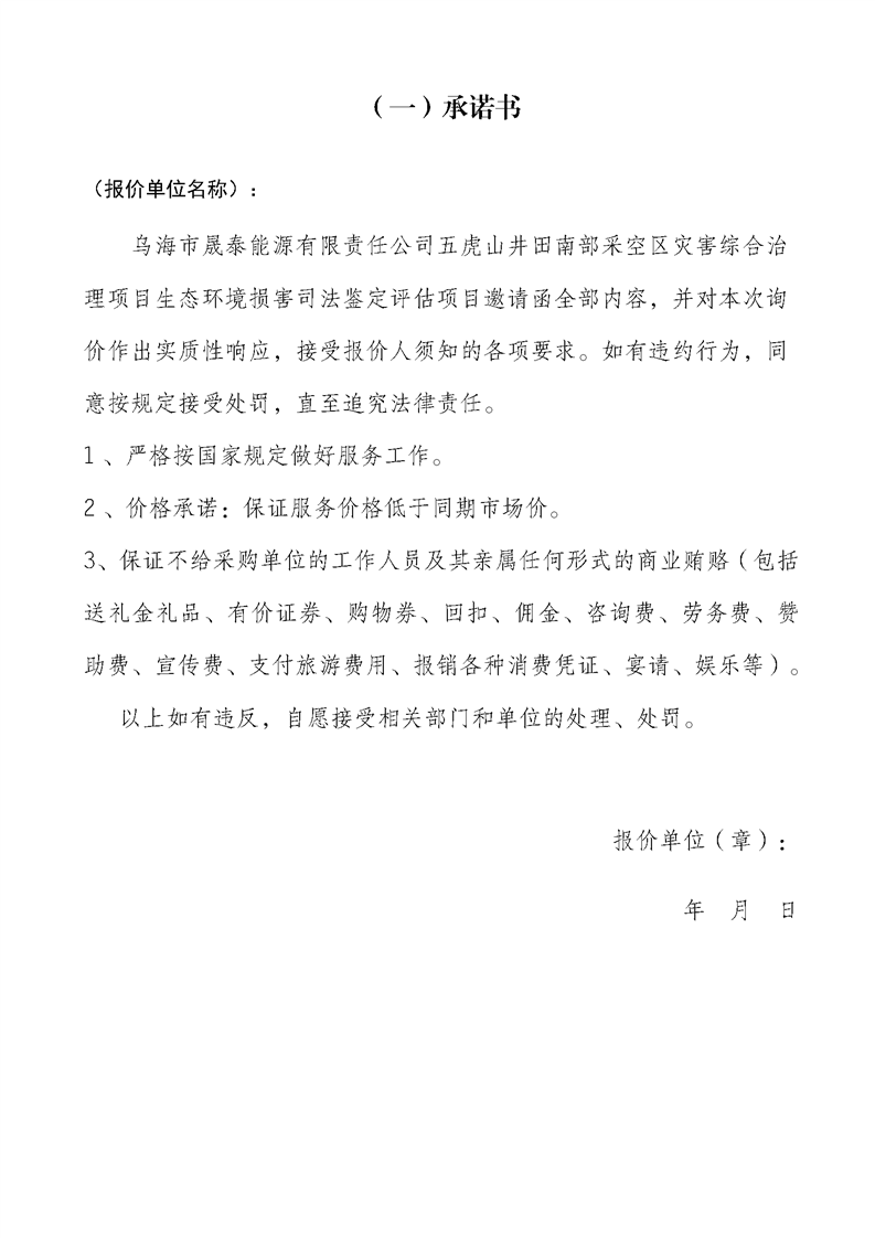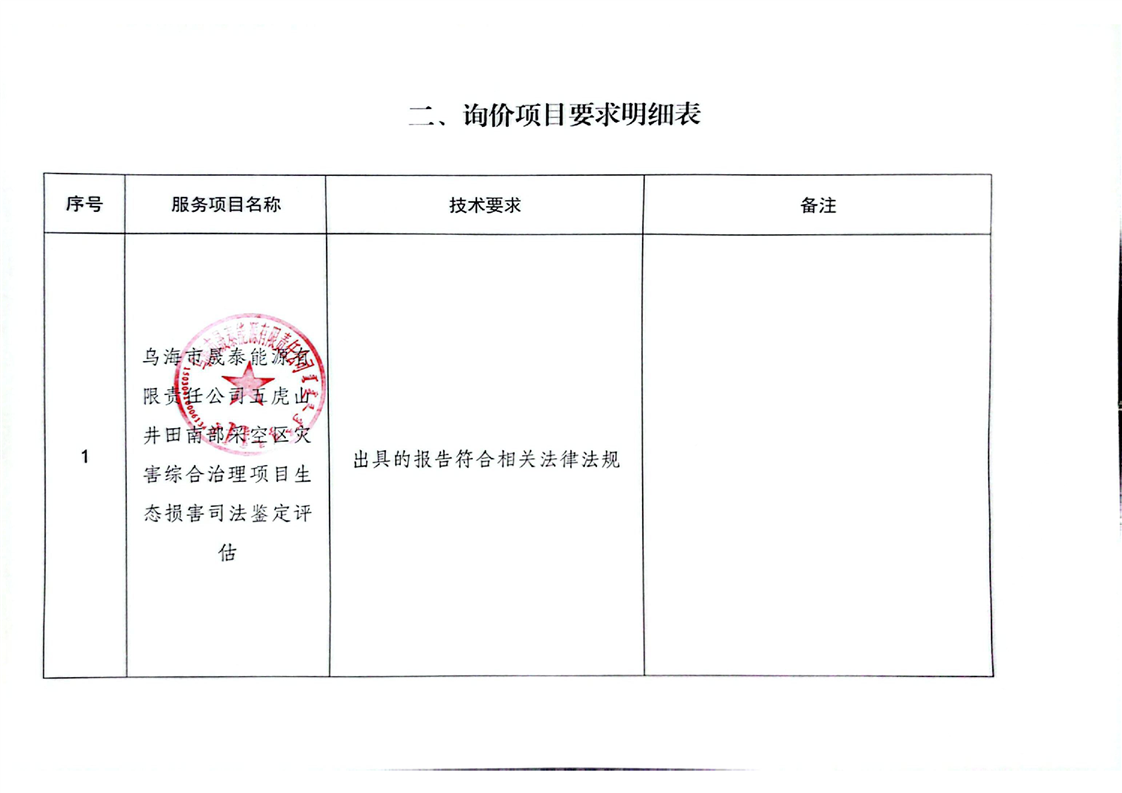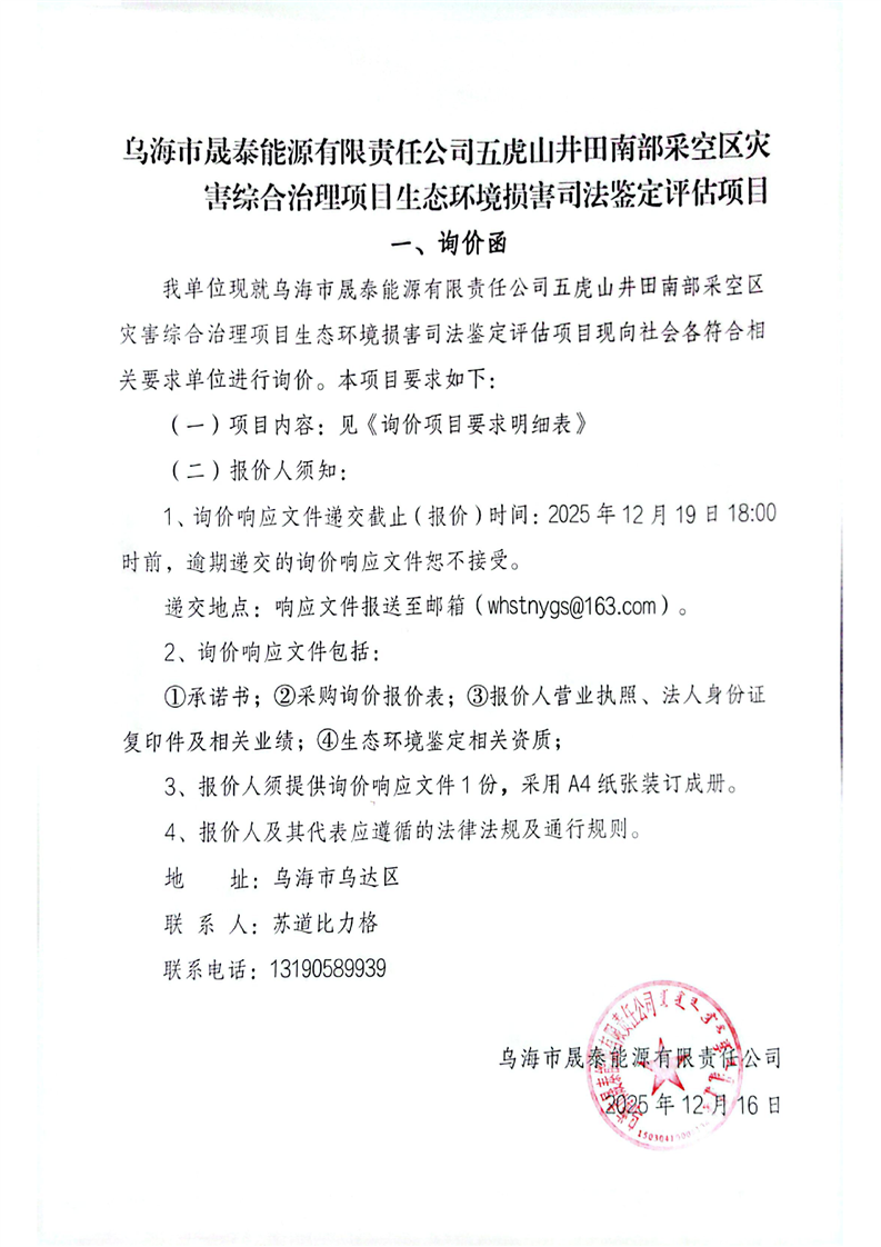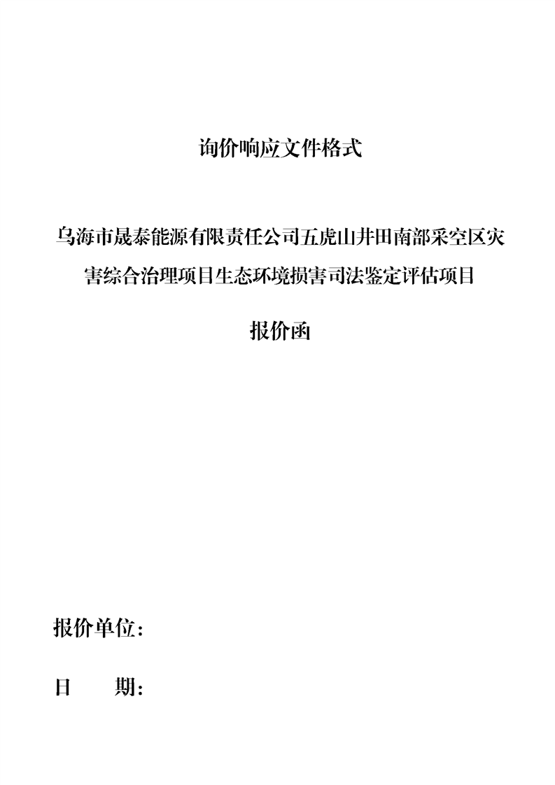 烏海市晟泰能源有限責(zé)任公司五虎山井田南部采空區(qū)災(zāi)害綜合治理項(xiàng)目生態(tài)環(huán)境損害司法鑒定評(píng)估項(xiàng)目詢(xún)價(jià)公告