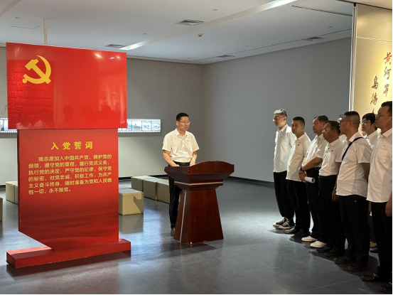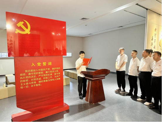 隨后,活動(dòng)進(jìn)入政治生日環(huán)節(jié)。在鮮紅的黨旗前,全體黨員神情肅穆,右手握拳高舉,齊聲重溫入黨誓詞:“我志愿加入中國共產(chǎn)黨,擁護(hù)黨的綱領(lǐng),遵守黨的章程……”字字千鈞的錚錚誓言在展廳內(nèi)激蕩回響,這不僅是黨員們對(duì)黨的赤誠告白,更彰顯著他們?yōu)楣伯a(chǎn)主義事業(yè)奮斗終身的堅(jiān)定信念。新發(fā)展黨員代表走上臺(tái)前,以真摯的話語作出莊嚴(yán)承諾;最后,黨委書記王海軍發(fā)表《做新時(shí)代合格共產(chǎn)黨員》主題寄語,激勵(lì)全體黨員在新時(shí)代新征程上勇?lián)姑?、砥礪前行。